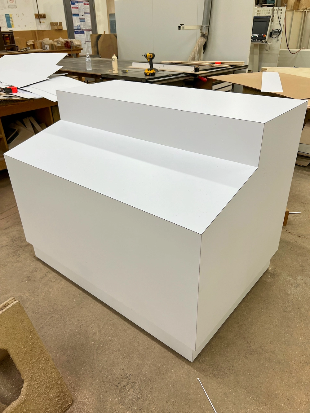 Rivercity Woodworking is a manufacturer and fabricator of permanent Point of Purchase Displays, Store Fixtures/Casework, Kiosks, and a supplier of Parts and Components. The primary materials used are wood-type products (e.g., MDF, Plywood, Melamine (TFL), Industrial Particle Board (IPB), and High Pressure Laminate (HPL)). Due to our machinery capabilities, we can machine various plastics (e.g., Acrylic, PVC, EPVC, HDPE, and Solid Surface sheet goods).